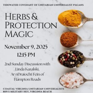 2025.11.08 Samhain 2025 2025.11.09 12:15 Herbs and Protection Magic: Pagan Discussion and Mixer (In Person) 2025.12.14 12:15 Pagan Discussion and Mixer (In Person)