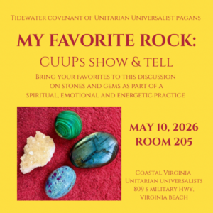 We are the Covenant of Unitarian-Universalist Pagans of the Tidewater Virginia area. We are associated with the Coastal Virginia Unitarian-Universalist congregation in Virginia Beach, VA.
